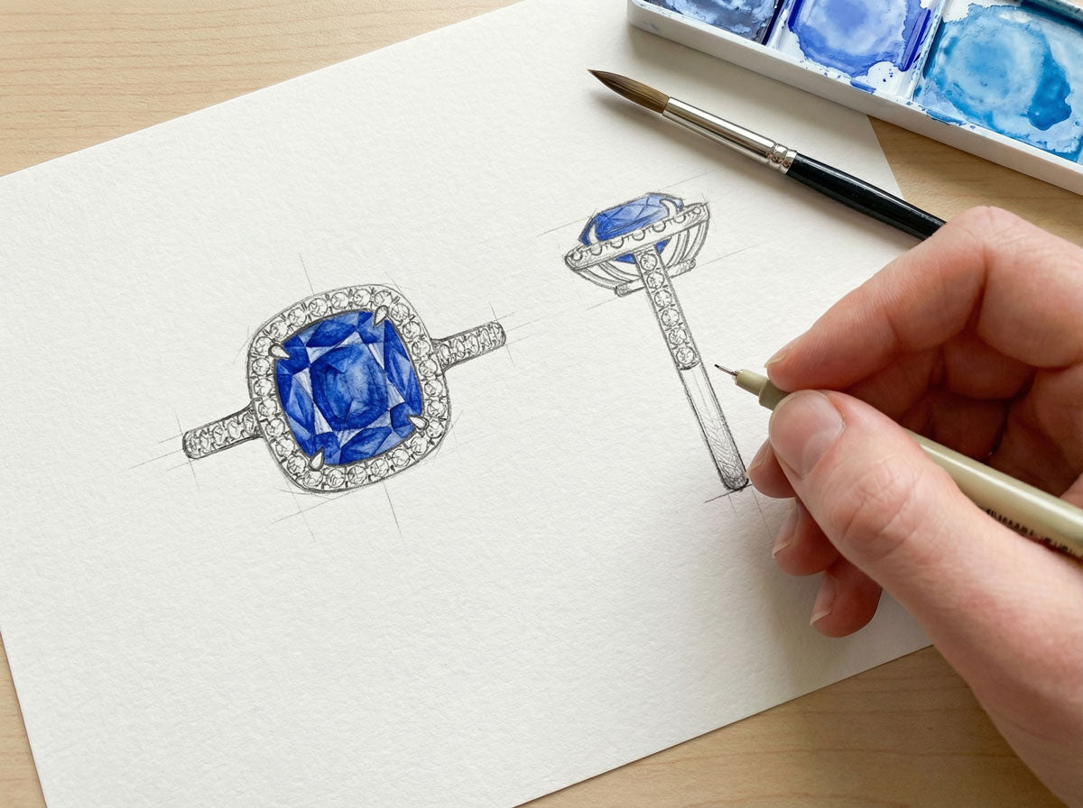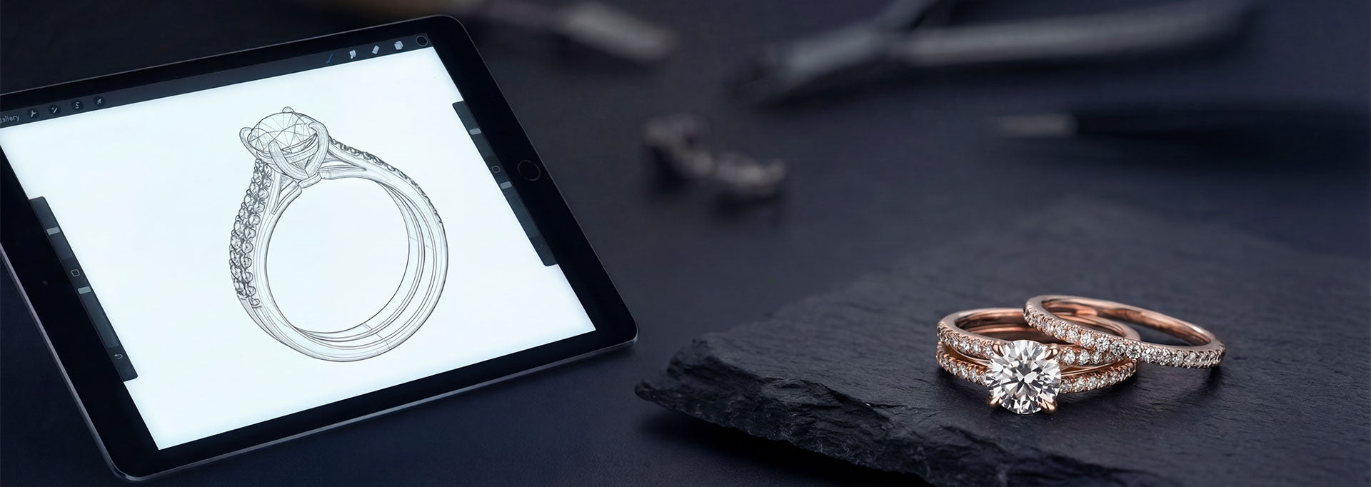 We combine your ideas with the feedback you’ve shared while trying on rings, exploring our collection and reviewing images. From there, we create sketches that reflect your style. Once approved, a 3D CAD rendering lets you view the ring from every angle and ensure it matches your vision.